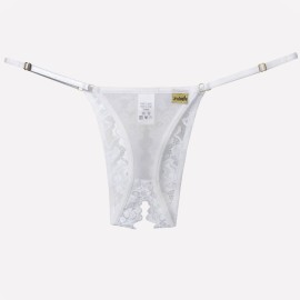 Calcinha Celestial - Calcinha aberta toda em tule dobrado com ilhoses e fita cruzada no bumbum. Detalhe com a palavra "SEXY" escrito com strass na frente.