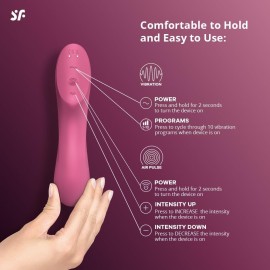 Para ligar o brinquedo, pressione o botão liga/desliga no centro por alguns segundos. Aumente a intensidade da pulsação de ar pressionando o mesmo botão. Para diminuir, pressione o botão na parte inferior. Para saber mais sobre como usar os botões e alternar entre as configurações de vibração e onda de pressão, consulte o manual incluso na embalagem.